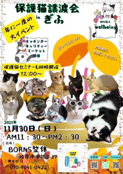 保護猫譲渡会&マルシェを行いました! 11月30日は、NPO法人wellbeing様と合同で、保護猫譲渡会&マルシェを行いました! ご来場いただいた皆様、出店頂いた皆様、ご協力いただいた皆様、本当にありがとうございました🐈⬛✨ おかげさまで 150名以上 の方にご来場いただき、終始とても賑やかな1日となりました! 当院では、年2回のマルシェを開催しています。 次回マルシェは春頃を予定しておりますので、是非チェックしといてくださいね。